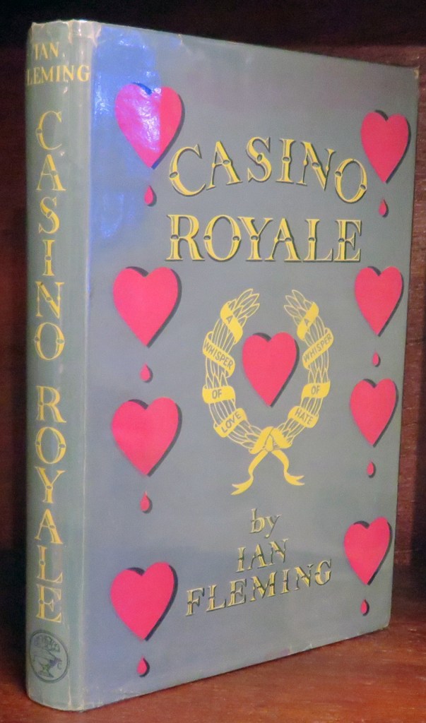 The 1st book in this famous 14 volume set, first edition hardback with original first state dust cover, price-clipped. Has not been restored. Some rubbing to extremities of dust cover. Light foxing to endpapers. Overall very good condition. 218 pp. Presents well, striking cover ‘arranged by the author. Perfect addition to a Fleming collection. The iconic 1st James Bond Novel this being the 1st edition 1st issue and with no restoration.
