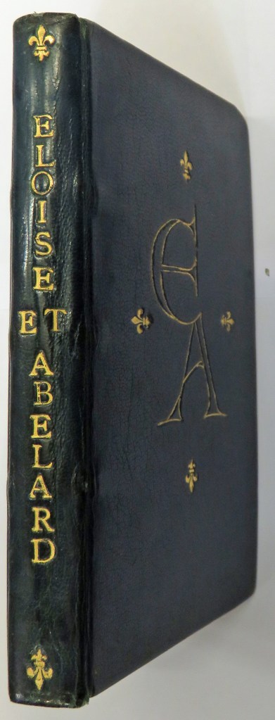 Eloise (or Heloise) was a French nun, writer, scholar and abbess, best known for her love affair and correspondence with Peter Abelard. Abelard was a medieval French scholastic philosopher, theologian and preeminent logician. Troisieme Edition. Augmentee de trois autres Lettres sur le meme sujet. Hardback contemporary full leather binding with gilt tooled vignette to cover and title with decorations to spine. Marbled endpapers. Original pages are in remarkable condition considering their age, with expected toning, occasional foxing, and some small closed tears or chipping. Engraved frontispiece. Overall very good condition, presents smartly. 198 pp. Scarce, only a handful of known copies.
