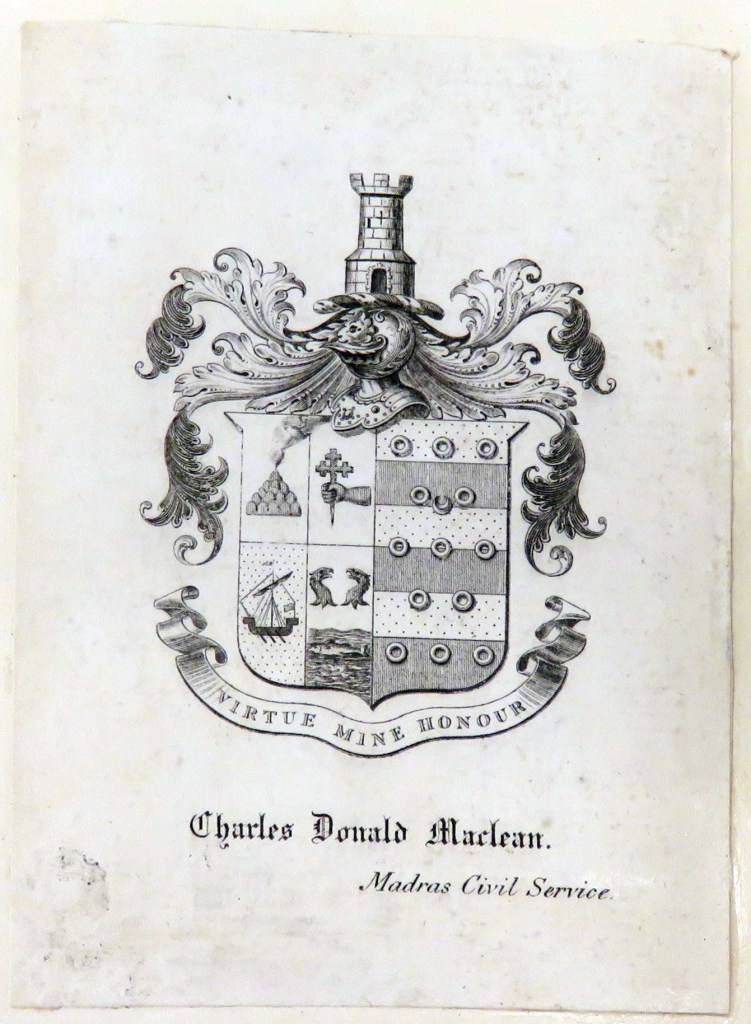 Hardback rebound in quarter leather with marbled boards. Four raised bands to spine. Burgundy title band with gilt tooled title and border. Fep contains bookplate which reads Charles Donald Maclean / Madras Civil Service. Vignette to title page. Thirteen fold out plates to rear. xvi + 547 + errata v + plates xiii pp. Binding near fine condition with light shelf wear. Half title has had restoration to lower left corner not affecting text. Pages quite toned and light to moderately foxed although generally clean, clear to read and intact. Plates are all intact and complete, with the odd closed tear. The first has a small water stain to verso, not affecting the printing. Generally toned, foxed and a little chipped but overall remarkably kept. Overall very good condition.
