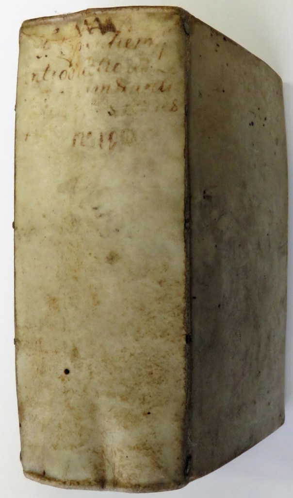 Remarkable book in original pig skin binding. Engraved vignette to title page, and decorations to headpiece, initial, and tailpiece. Moderate to heavy rubbing to cover with some small marks and stains, title to spine heavily rubbed. The binding is very tight and the book is solid, all original, an amazing feat considering its age. Some light ink marks to rear of cover. Endpapers are worn and chipped. Small wormhole from page 267 to the end, not affecting text. To some pages toward the rear several wormholes have split. This is in the margin and doesn’t affect the text. Pages are toned and lightly foxed to edges although overall clean and secure. Some cracking to gutter although binding and pages seem very secure despite this. Small ink line to rear page. Overall very good condition. 744 pp 12[sup]0. Friedrich Spanheim the Younger was a German Calvinist theologian of conservative views who emphasised the study of church history.