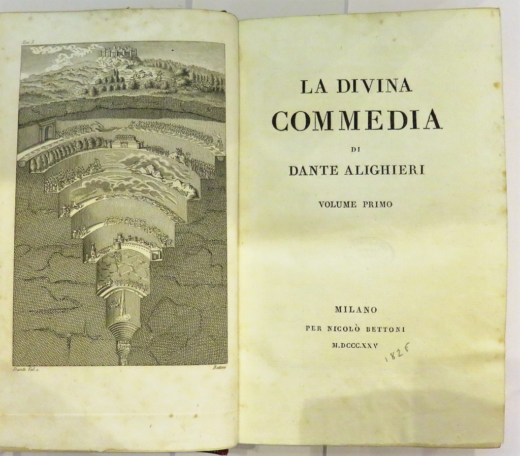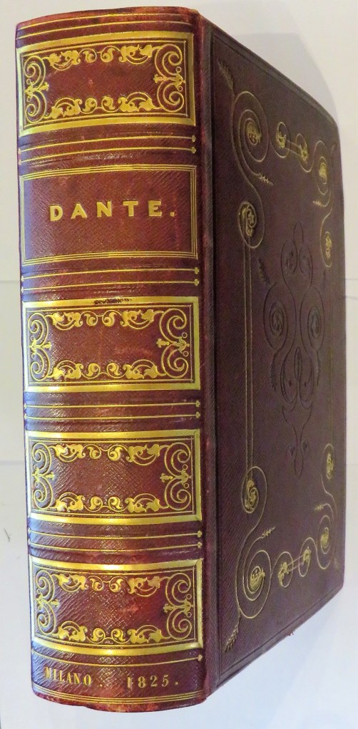 Volumes 1-3 bound together. Italian text. Full crushed Morocco binding with ornate gilt tooled details to cover and spine. Blind tooled details to cover. Gilt tooled title to spine. All edge gilt to pages. Bevelled edges. Engraved frontispiece to each volume. Contains library bookplate to fep and stamp to ffep. Hinge and edges a little rubbed, otherwise bright and smart. Pages a little toned to edges with infrequent spotting. Overall very good condition. xxxi + 314 + ii + 339 + ii + 343 + iii pp. Beautiful copy of classic literature.