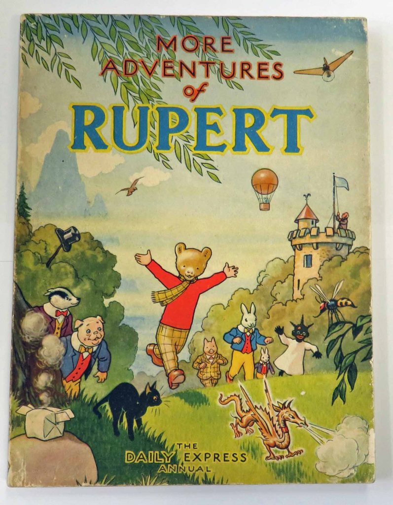 Original pictorial card covers with the front cover depicting Rupert and friends near a castle. The covers are generally in good condition, front cover clean and bright, just a little wear to the extremities. Spine very lightly worn along the outer hinges. This book belongs to has been neatly filled in by a child. Not price clipped. Contents in a good clean condition with no further inscriptions or marks. Beautifully illustrated by Alfred Bestall. pp. 120. Overall a good copy.