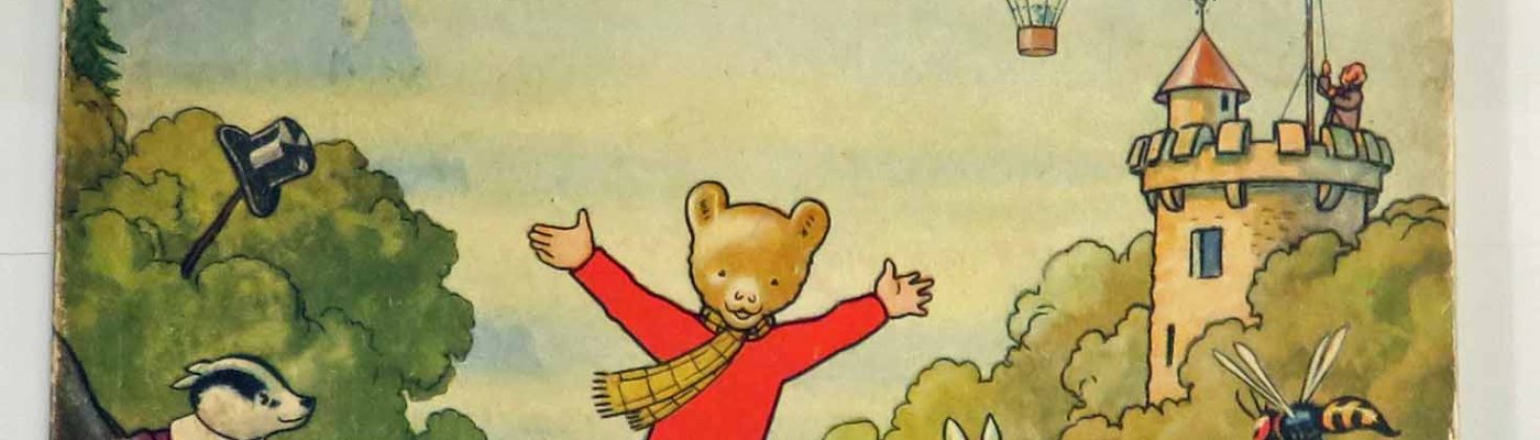Original pictorial card covers with the front cover depicting Rupert and friends near a castle. The covers are generally in good condition, front cover clean and bright, just a little wear to the extremities. Spine very lightly worn along the outer hinges. This book belongs to has been neatly filled in by a child. Not price clipped. Contents in a good clean condition with no further inscriptions or marks. Beautifully illustrated by Alfred Bestall. pp. 120. Overall a good copy.